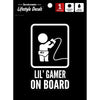 Lil' Hunter on Board peel and stick decals are easy to apply. They are printed with UV rated ink on outdoor rated vinyl. To apply the sticker, just clean and dry the application area thoroughly, press decal on the desired location, and then apply pressure from the center to the edges. They are made in the US using high quality weatherproof materials. They are a one time use and are easily removable without residue.