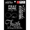 Looking for a way to add a little spirituality to your space? Check out these religious phrases black and white decals! The pack includes 4 different stickers, each with a different religious phrase. They're easy to apply - just clean and dry the application area thoroughly, press the decal on the desired location, and then apply pressure from the center to the edges. They're printed with UV rated ink on outdoor rated vinyl, so they'll withstand the elements. And if you ever want to remove them, they're a one time use and easily removable without residue. Made in the USA with high quality weatherproof materials, these decals are a great way to add some spirituality to your space!