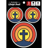These retro flower cross peel and stick decals are a great way to add some personality to your walls. The pack includes 3 different stickers, so you can mix and match to create your own unique look. They are easy to apply; just clean and dry the application area thoroughly, press decal on the desired location, and then apply pressure from the center to the edges. They are printed with UV rated ink on outdoor rated vinyl, so they will withstand the elements. Made in the US from high quality weatherproof materials, these decals are a one time use and are easily removable without residue.